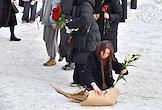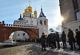 Церемония прощания с солистом группы Shortparis Николаем Комягиным в Феодоровском соборе. Очередь на улице перед собором.