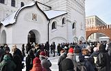 Церемония прощания с солистом группы Shortparis Николаем Комягиным в Феодоровском соборе. Люди в очереди на церемонию.