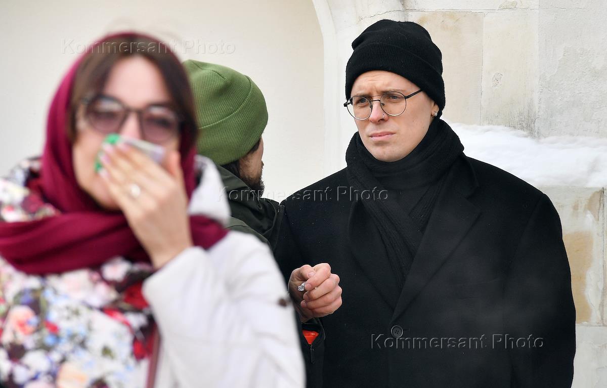 Церемония прощания с солистом группы Shortparis Николаем Комягиным в Феодоровском соборе. Участник группы Shortparis Данила Холодков (справа) на церемонии.