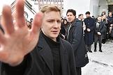 Церемония прощания с солистом группы Shortparis Николаем Комягиным в Феодоровском соборе. Участник группы Shortparis Александр Ионин (в центре) на церемонии.