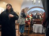Церемония прощания с солистом группы Shortparis Николаем Комягиным в Феодоровском соборе. Люди на церемонии.