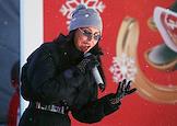 Фестиваль "Сани" от "Московских сезонов" в Крылатском. Соревнования по катанию на ватрушках с горы. Певица Алсу во время соревнований.