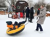 Фестиваль "Сани" от "Московских сезонов" в Крылатском. Жанровая фотография. Гости фестиваля во время катания на ватрушках.
