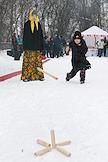 Фестиваль "Сани" от "Московских сезонов" в Крылатском. Жанровая фотография. Гости фестиваля во время игры в городки.