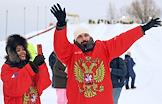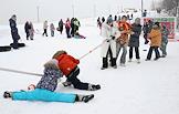 Фестиваль "Сани" от "Московских сезонов" в Крылатском. Жанровая фотография. Гости фестиваля во время соревнований по перетягиванию каната.