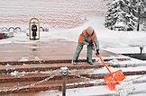 Жанровая фотография. Сотрудник коммунального хозяйства во время очистки от снега площади монумента "Могила Неизвестного Солдата" в Александровском саду.