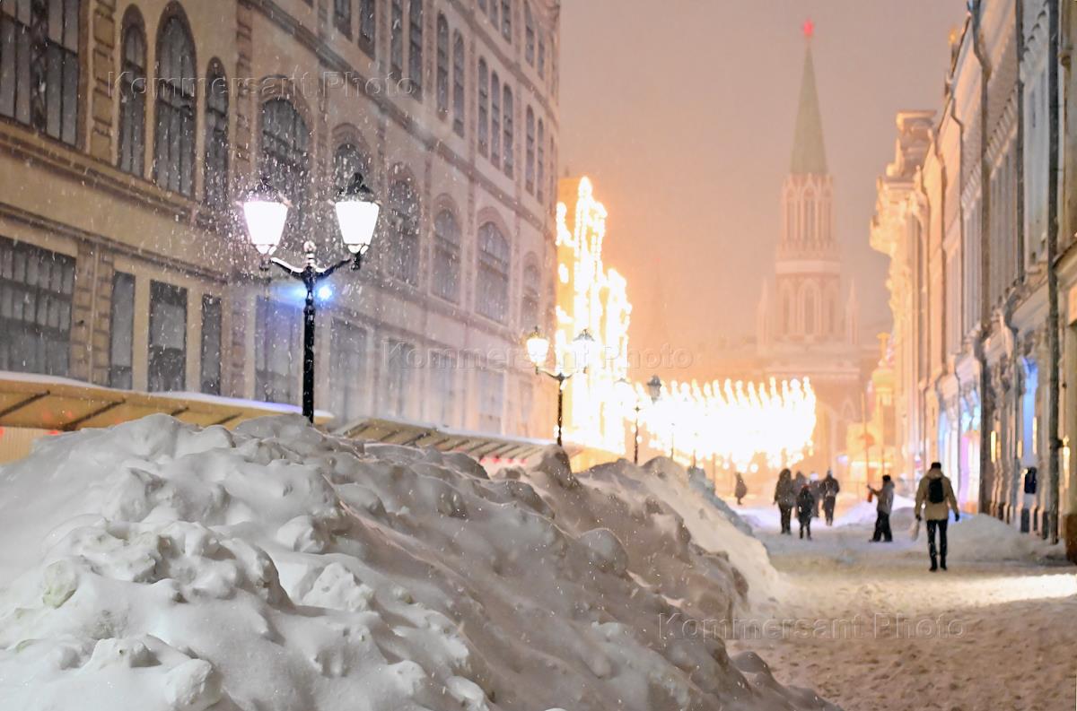 Виды Москвы во время снегопада. Жанровая фотография. Праздничные украшения города в рамках фестиваля "Китайский Новый год в Москве".
