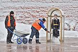 Жанровая фотография. Сотрудники коммунального хозяйства во время очистки от снега площади монумента "Могила Неизвестного Солдата" в Александровском саду.