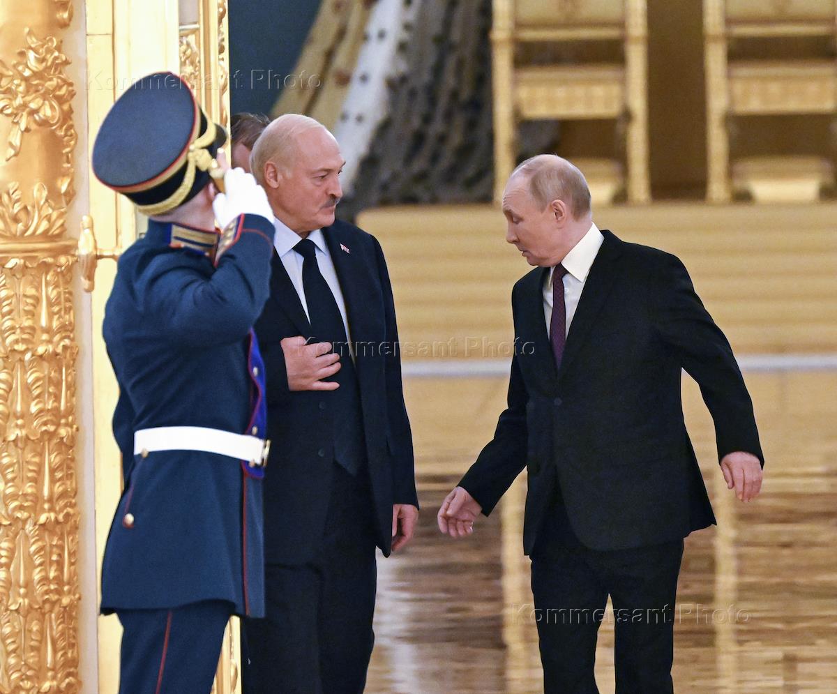 Заседание Высшего государственного совета Союзного государства (СГ) России и Белоруссии в Большом Кремлевском дворце. Президент Белоруссии Александр Лукашенко (слева) и президент России Владимир Путин (справа) перед началом заседания.