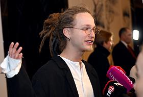 Премьера фильма "Наследник" режиссера Джона Паттона Форда в кинотеатре "Художественный". Музыкант Антоний Толмацкий на премьере.