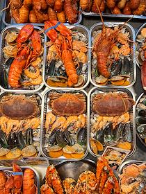 Виды города Саньи. Жанровая фотография. Морепродукты на уличном рынке.