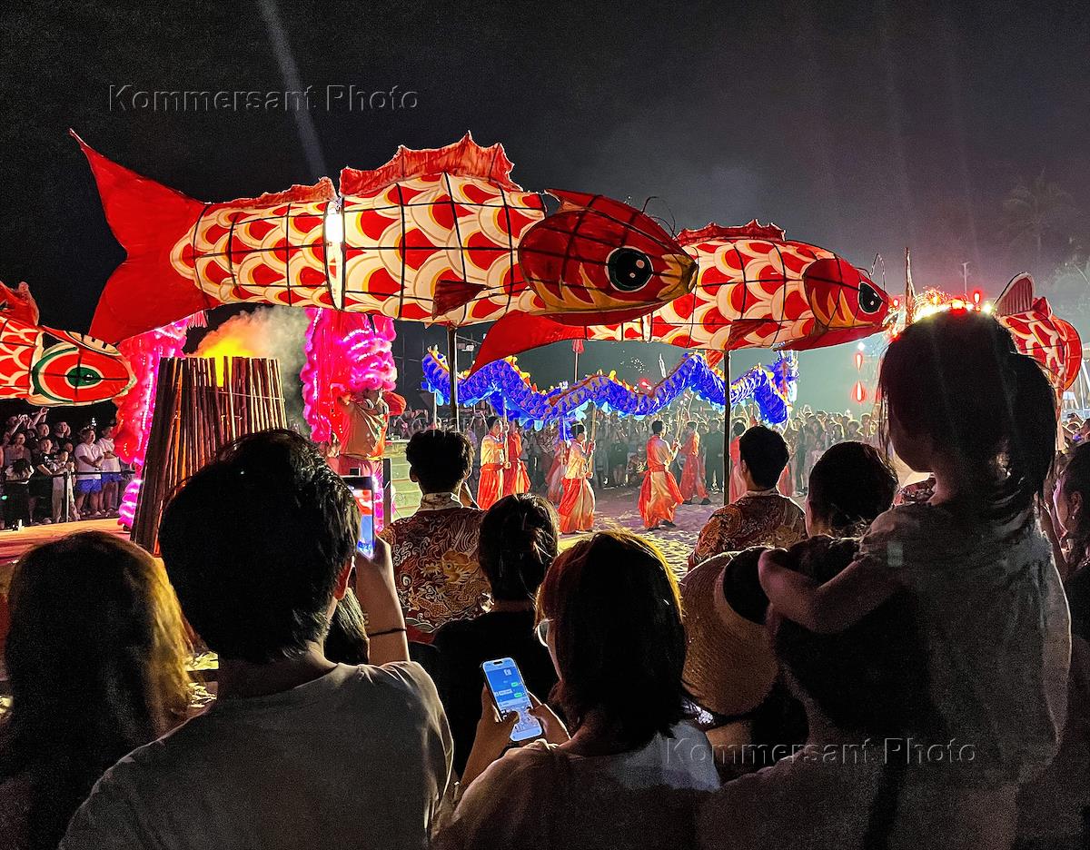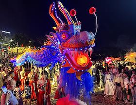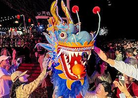Виды города Саньи. Жанровая фотография. Празднование китайского нового года. Шествие дракона.