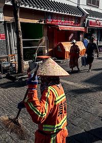 Виды города Саньи. Жанровая фотография. Уборщик улиц.