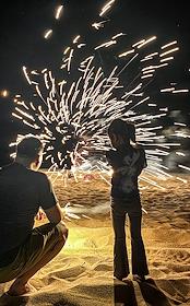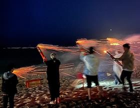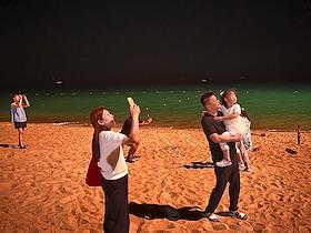 Виды города Саньи. Жанровая фотография. Отдыхающие на пляже вечером.