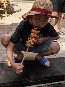 Виды города Саньи. Жанровая фотография. Мальчик ест на улице.