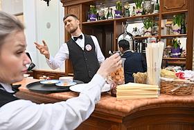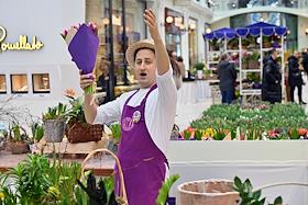 Цветочная ярмарка "Пассаж в цветах" в Петровском Пассаже. Актер Александр Олешко на ярмарке.