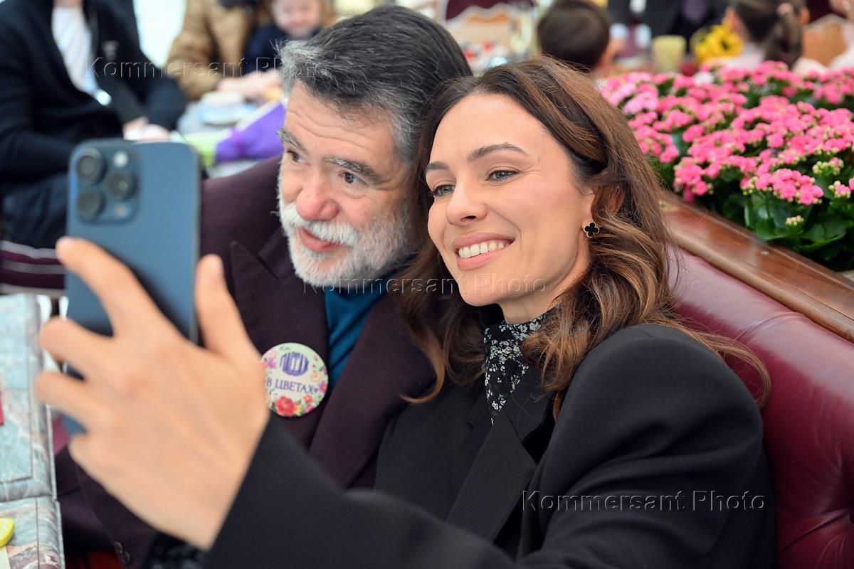Цветочная ярмарка "Пассаж в цветах" в Петровском Пассаже, организованная совместно с Фондом поддержки молодых певцов Ильдара Абдразакова. Председатель наблюдательного совета компании Bosco di Ciliegi Михаил Куснирович (слева) на ярмарке.