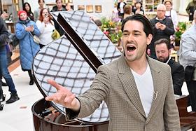Цветочная ярмарка "Пассаж в цветах" в Петровском Пассаже, организованная совместно с Фондом поддержки молодых певцов Ильдара Абдразакова. Оперный певец Елисей Лаптев во время выступления на ярмарке.