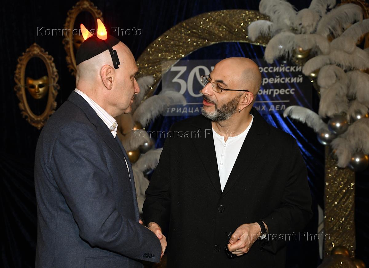 Праздничный вечер от Российского еврейского конгресса (РЕК) в преддверии праздника Пурим в Московском городском гольф-клубе. Президент РЕК Александр Генцис (справа) во время праздничного вечера.