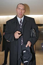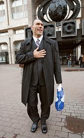 Чемпион мира по боксу по версии "ВБА" в супертяжелом весе Николай Валуев после окончания пресс-конференции, посвященной поединку российского боксера-профессионала Александра Поветкина в рамках проведения международного турнира. Пресс-конференция прошла в агентстве "ИТАР-ТАСС".