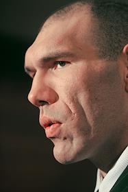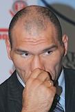 Чемпион мира по боксу по версии "ВБА" в супертяжелом весе Николай Валуев перед началом пресс-конференции, посвященной поединку российского боксера-профессионала Александра Поветкина в рамках проведения международного турнира. Пресс-конференция прошла в агентстве "ИТАР-ТАСС".