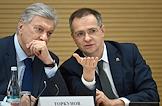 Meeting of the Interdepartmental Commission on Historical Education at the Russian Presidential Executive Office. Rector of the Moscow State Institute of International Relations (MGIMO) of the Russian Ministry of Foreign Affairs Anatoly Torkunov (left) and Aide to the President of Russia Vladimir Medinsky (right) at the meeting.
