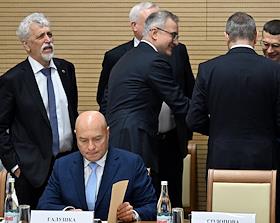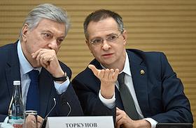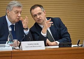 Meeting of the Interdepartmental Commission on Historical Education at the Russian Presidential Executive Office. Head of the Presidential Executive Office for State Policy in the Humanitarian Sphere Vladimir Bocharnikov (left) and Rector of the Moscow State Institute of International Relations (MGIMO) of the Russian Ministry of Foreign Affairs Anatoly Torkunov (right) before the meeting.