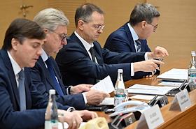 Meeting of the Interdepartmental Commission on Historical Education at the Russian Presidential Executive Office. From left to right: Director of the Institute of Archaeology of the Russian Academy of Sciences (RAS) Nikolai Makarov, Deputy Secretary of the Civic Chamber of Russia Alexander Galushka, Head of the Presidential Executive Office for State Policy in the Humanitarian Sphere Vladimir Bocharnikov, Deputy Minister of Science and Higher Education of Russia Konstantin Mogilevsky and Acting Director of the Institute of Russian History of the RAS Denis Gergilev before the meeting.