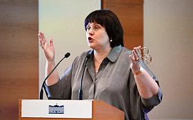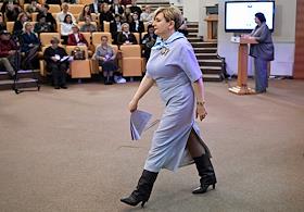The Second All-Russian Symposium "The Female Face of the New World Order" at the State Duma of Russia. Representative of the Orenburg Region executive body in the Federation Council Elena Afanasyeva speaking at the symposium.