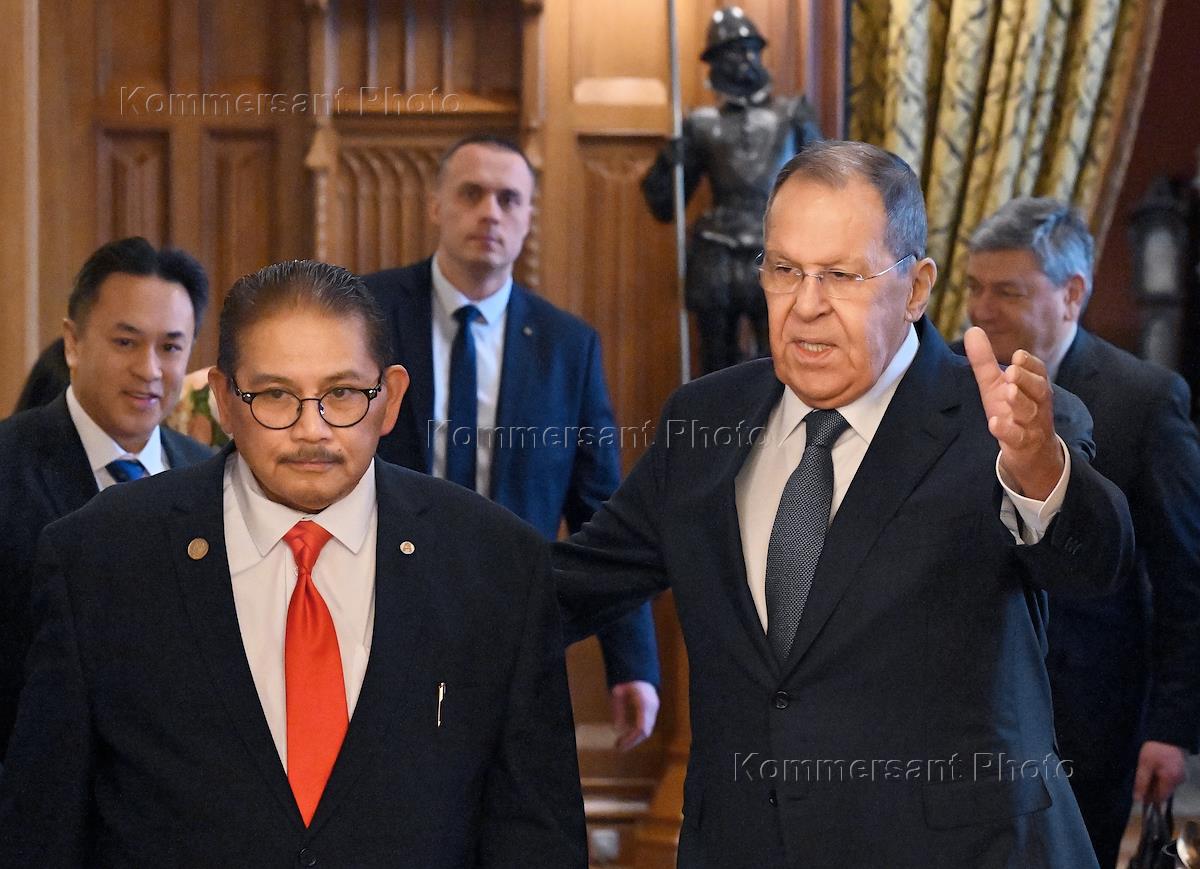 Talks between Russian Foreign Minister Sergey Lavrov and Second Minister of Foreign Affairs of Brunei Darussalam Erivan Yusof at the Reception House of the Russian Foreign Ministry. Second Minister of Foreign Affairs of Brunei Darussalam Erivan Yusof (left) and Russian Foreign Minister Sergey Lavrov (right) before the talks.