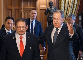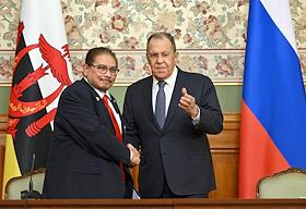 Talks between Russian Foreign Minister Sergey Lavrov and Second Minister of Foreign Affairs of Brunei Darussalam Erivan Yusof at the Reception House of the Russian Foreign Ministry. Second Minister of Foreign Affairs of Brunei Darussalam Erivan Yusof (right) and Russian Foreign Minister Sergey Lavrov (left) after a press conference following the talks.