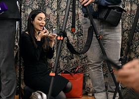 Talks between Russian Foreign Minister Sergey Lavrov and Second Minister of Foreign Affairs of Brunei Darussalam Erivan Yusof at the Reception House of the Russian Foreign Ministry. Genre photo. A journalist before the talks.
