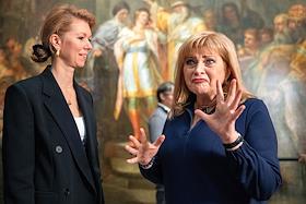 Заседание Совета реставраторов Государственного Русского музея в корпусе Бенуа. Генеральный директор Фонда поддержки культурных инициатив ПАО "Газпром" Елена Давыдова (слева) и генеральный директор Русского музея Алла Манилова перед началом заседания.