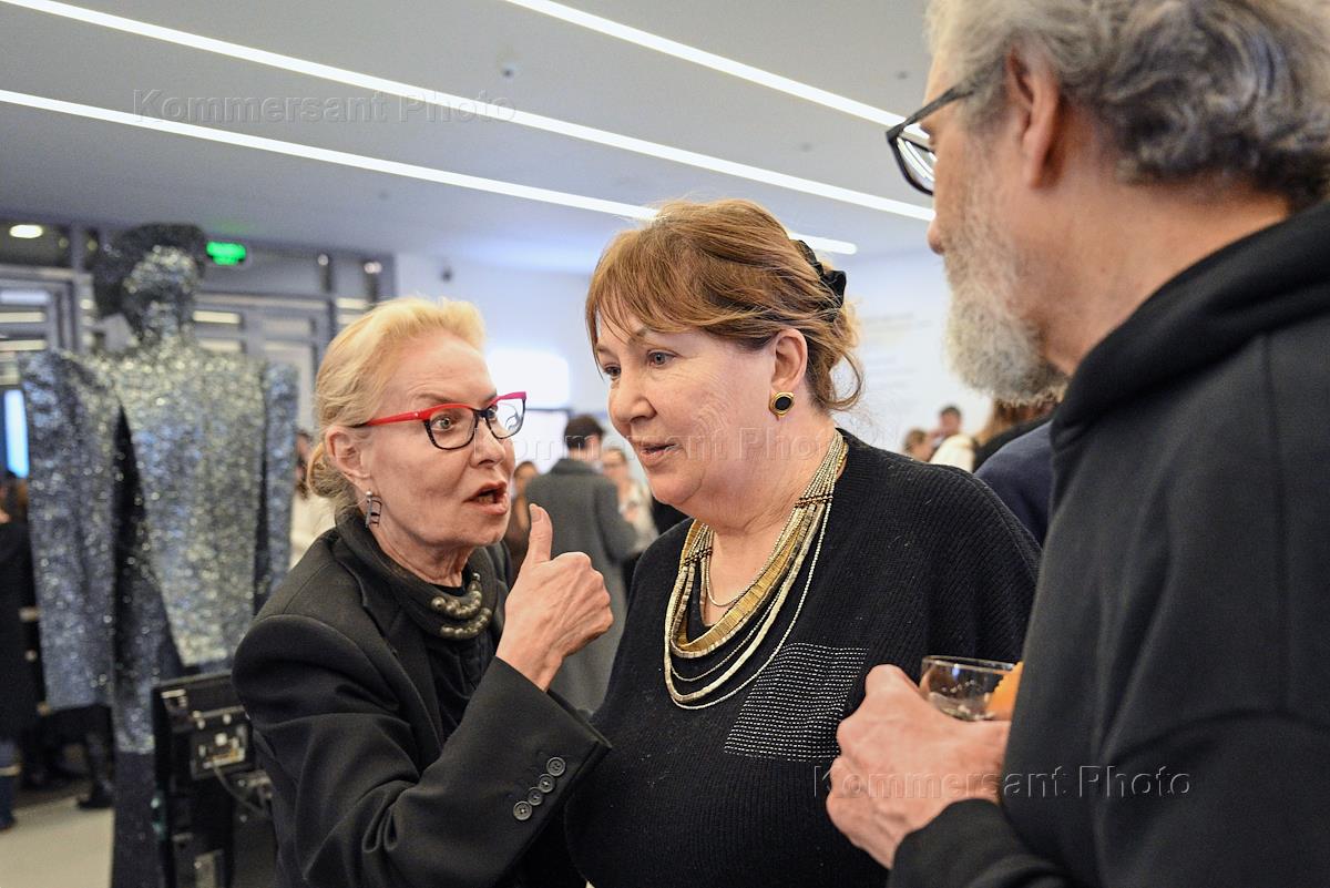 Церемония открытия Второй международной биеннале "Искусство будущего" в Мультимедиа Арт музее. Директор Мультимедиа Арт Музея Ольга Свиблова (слева) и со-директора Московской школы фотографии и мультимедиа имени А. Родченко Елена Лунгина (в центре) во время церемонии.