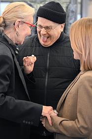 Церемония открытия Второй международной биеннале "Искусство будущего" в Мультимедиа Арт музее. Директор Мультимедиа Арт Музея Ольга Свиблова (слева) и совладелец галереи "Триумф" Дмитрий Ханкин (в центре) во время церемонии.