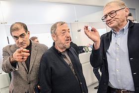 Церемония открытия Второй международной биеннале "Искусство будущего" в Мультимедиа Арт музее. Режиссер Павел Лунгин (в центре) и спецпредставитель президента России по связям с международными организациями Борис Титов (справа) во время церемонии.