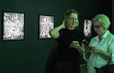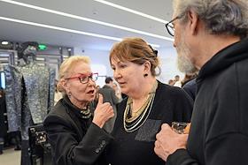 Церемония открытия Второй международной биеннале "Искусство будущего" в Мультимедиа Арт музее. Директор Мультимедиа Арт Музея Ольга Свиблова (слева) и со-директора Московской школы фотографии и мультимедиа имени А. Родченко Елена Лунгина (в центре) во время церемонии.