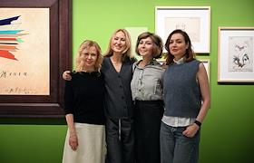 Церемония открытия Второй международной биеннале "Искусство будущего" в Мультимедиа Арт музее. Слева направо: журналист Галина Мазаева, директор по развитию партнерских и клиентских программ МР Групп Ирина Елизарова, юрист Виктория Полякова и телеведущая Татьяна Геворкян на церемонии.