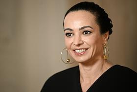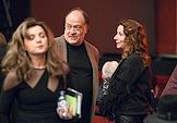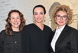Церемония открытия 14-го сезона Международного фестиваля современной хореографии Context Diana Vishneva. Спектакль "Хора" хореографа Охада Наарина на музыку Исао Томита в исполнении труппы Context на сцене Театра Ермоловой. Слева направо: директор по развитию Московской школы управления "Сколково" Наталья Тимакова, прима Мариинского театра Диана Вишнева и руководитель протокола председателя правительства России – заместитель руководителя аппарата правительства России Марина Ентальцева во время сбора гостей перед началом спектакля.