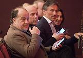 Церемония открытия 14-го сезона Международного фестиваля современной хореографии Context Diana Vishneva. Спектакль "Хора" хореографа Охада Наарина на музыку Исао Томита в исполнении труппы Context на сцене Театра Ермоловой. Председатель совета директоров "Азимут Хотелс Компани" Александр Клячин (слева) во время сбора гостей перед началом спектакля.