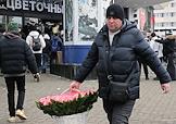 Празднование Международного женского дня 8 марта в Москве. Жанровая фотография. Мужчина с букетом.