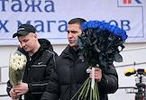 Празднование Международного женского дня 8 марта в Москве. Жанровая фотография. Мужчины с букетами роз.