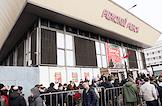 Празднование Международного женского дня 8 марта в Москве. Жанровая фотография. Мужчины у входа на Рижский рынок.