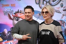 Презентация первого трека виртуальной музыкальной группы "КОЗПЛЕЙ" лейбла Riki Music (мюзикл "Зубастая няня" продюсера Лины Арифулиной) в креативном пространстве "Люмьер-холл". Телеведущая Яна Чурикова (слева) и актер, бывший участник группы "Корни" Александр Асташенок (в центре) на презентации.