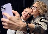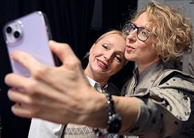 Презентация первого трека виртуальной музыкальной группы "КОЗПЛЕЙ" лейбла Riki Music (мюзикл "Зубастая няня" продюсера Лины Арифулиной) в креативном пространстве "Люмьер-холл". Генеральный продюсер проекта Лина Арифулина (справа) на презентации.