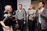 Презентация первого трека виртуальной музыкальной группы "КОЗПЛЕЙ" лейбла Riki Music (мюзикл "Зубастая няня" продюсера Лины Арифулиной) в креативном пространстве "Люмьер-холл". Слева направо: генеральный продюсер проекта Лина Арифулина, актер Александр Олешко, телеведущая Яна Чурикова и актер, бывший участник группы "Корни" Александр Асташенок на презентации.