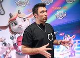 Презентация первого трека виртуальной музыкальной группы "КОЗПЛЕЙ" лейбла Riki Music (мюзикл "Зубастая няня" продюсера Лины Арифулиной) в креативном пространстве "Люмьер-холл". Телеведущий Артем Шалимов во время презентации.