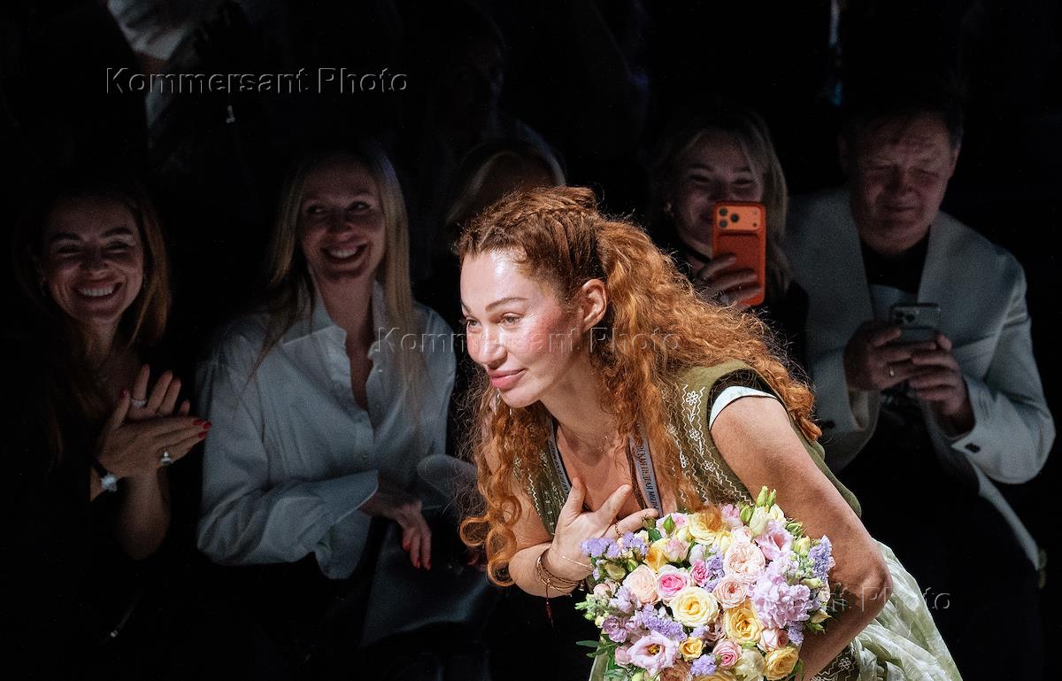 Шестая Московская неделя моды в Центральном выставочном зале "Манеж". Показ моделей одежды Masterpeace дизайнера Евгении Линович. Дизайнер Евгения Линович во время показа.