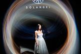 Шестая Московская неделя моды в Центральном выставочном зале "Манеж". Показ моделей одежды Solangel дизайнера Ирены Сопрано. Модель во время показа.