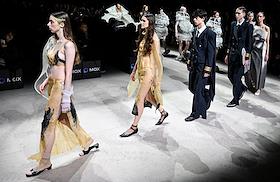 Шестая Московская неделя моды в Центральном выставочном зале "Манеж". Показ Школы дизайна НИУ ВШЭ.